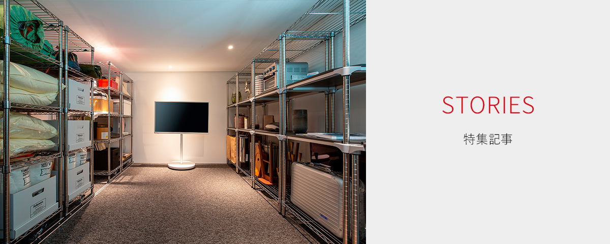 ビルトインガレージ脇にある11㎡の納戸スペースを活用し、スライド式の大容量収納や、図面チェック用のワークスペースを構築した事例です。