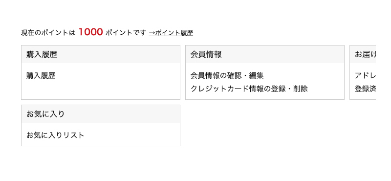 ・ポイント残高の確認は「マイページ」にログイン後、「→ポイント履歴」をご確認願います。