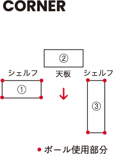 FLAT SHELFは、直線だけでなく、コーナーにもぴったりフィットする構成が可能。